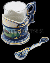 В комплекте: подстаканник, хрустальный стакан, керамическая ложка