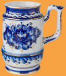 Высота 15 смДиаметр основания 10 смОбъем 600 млГжель, ручная работаПроизводитель Россия