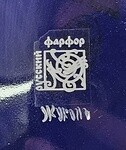 "Глухой кобальт" - это особый вид росписи, когда блестящая темно-синяя глазурь покрывает все изделие, а по ней наносится тонкий, графичный рисунок золотом. Также, в процессе росписи может быть использована белая надглазурная краска, отчего она становится как бы зеркальным отражением традиционной гжельской техники, когда синие цветы превращаются в белые, а белый фон становится синим, создавая эффект морозного узора. К сожалению, на фотографиях очень сложно передать всю глубину цвета кобальтовой глазури и богатство росписи. Однако, достаточно просто взять в руки такое изделие, чтобы навсегда влюбиться в него.