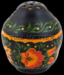 Высота солонки 6,5 смДиаметр по центру 6 смДиаметр основания 3,5-4 смДиаметр верха примерно 2,7 мМатериал керамикаХохлома, ручная росписьПроизводитель Россия